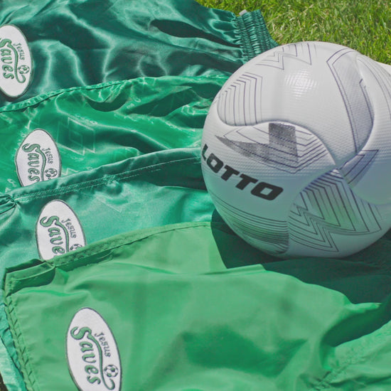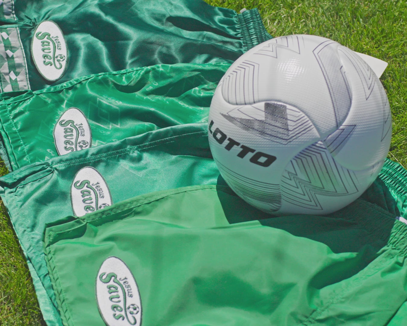 100% Embroidered Patch with iron on backing from our Jesus Saves soccer-themed drop.