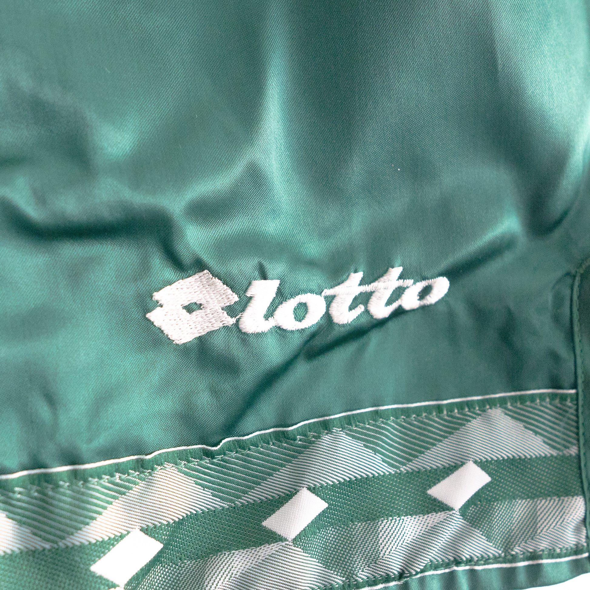 Deadstock 1990s Lotto Coscia Football Shorts in Deep Green. Every pair comes with an iron-on "Jesus Saves" fully embroidered patch.
